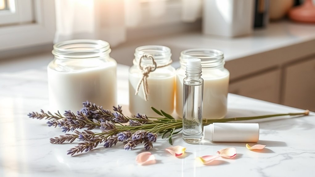 To keep body odor at bay all day, try natural deodorants with baking soda, arrowroot powder, or tea tree oil for their antibacterial properties. Incorporate essential oils like lavender or lemongrass for a fresh scent, and consider dietary changes, such as increasing fruits and veggies while staying hydrated. Additionally, using DIY body scrubs can help exfoliate and revive your skin. Couple these with stress reduction techniques to enhance your freshness further. Discover even more effective strategies ahead.