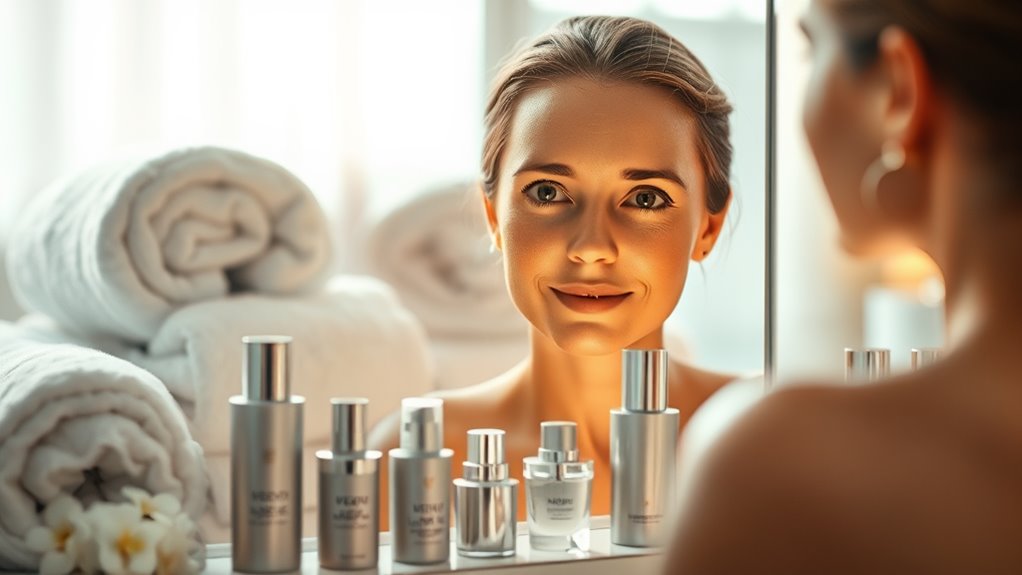 Start with retinol; it promotes cell turnover and smooths fine lines, giving you that youthful glow. Next, consider hyaluronic acid, which hydrates and plumps your skin, making it look fuller and fresh.