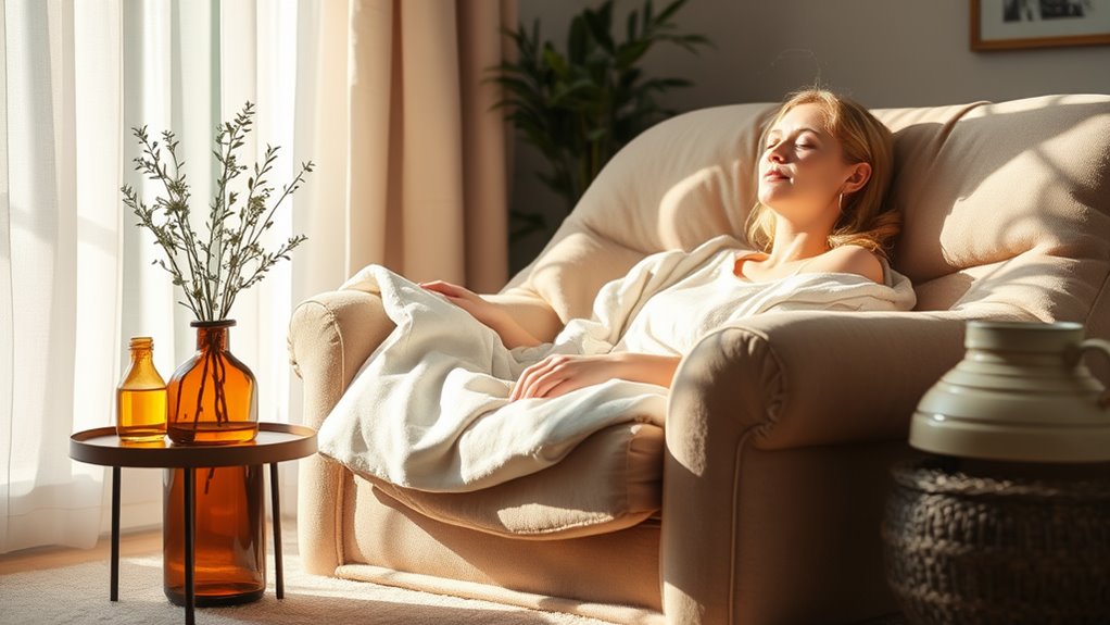 First, try applying a warm compress to tense areas; heat can soothe muscle aches. Additionally, consider using essential oils like lavender or peppermint in a diffuser—they can lift your spirits and reduce discomfort. Gentle movement like walking can also improve blood flow and help ease pain.