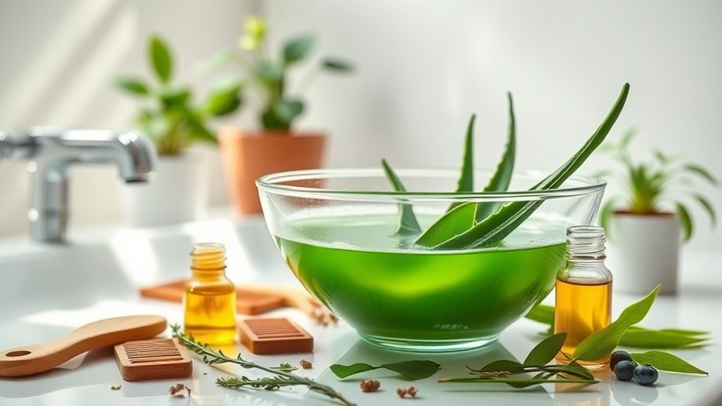 You can boost your hair’s growth at home with several effective remedies. Try using essential oils like rosemary and lavender mixed with a carrier oil in regular scalp massages to promote circulation. Incorporate biotin and omega-3 supplements for overall hair health and consider applying fresh aloe vera or onion juice directly to your scalp for nourishment. Coconut oil is great for moisture and strength too. Discover even more natural solutions that can enhance your hair vitality!