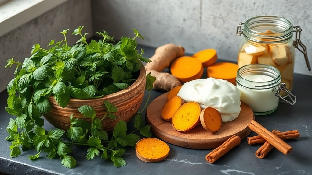 When your gut’s feeling inflamed, turning to natural remedies can provide much-needed relief and promote healing. Incorporate anti-inflammatory foods like ginger, turmeric, and fermented vegetables into your diet. Drinking herbal teas, such as chamomile or peppermint, can soothe discomfort. Probiotic-rich foods support gut health, while staying hydrated is crucial. Additionally, using this drink made with turmeric and ginger can rapidly reduce intestinal inflammation. These simple steps can significantly alleviate inflammation and restore balance in your digestive system.