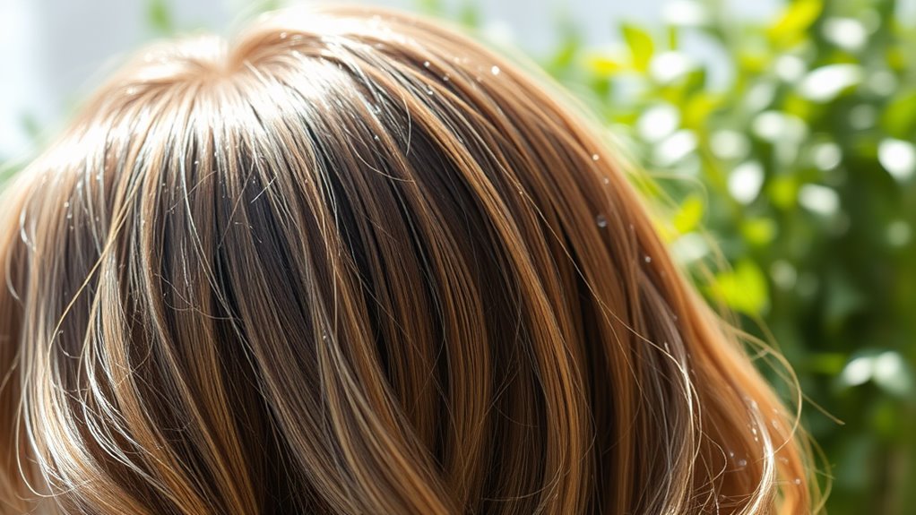 If you’re experiencing persistent dandruff, using a herbal rinse can be a game changer. Ingredients like tea tree oil help combat fungal growth, while chamomile soothes irritation. Regular application balances oil production and promotes a healthier scalp. You’ll notice reduced flakes and itchiness, leading to improved overall scalp health. Plus, maintaining a proper diet and hydration supports this effect. Discover how to enhance your scalp care routine for lasting results.