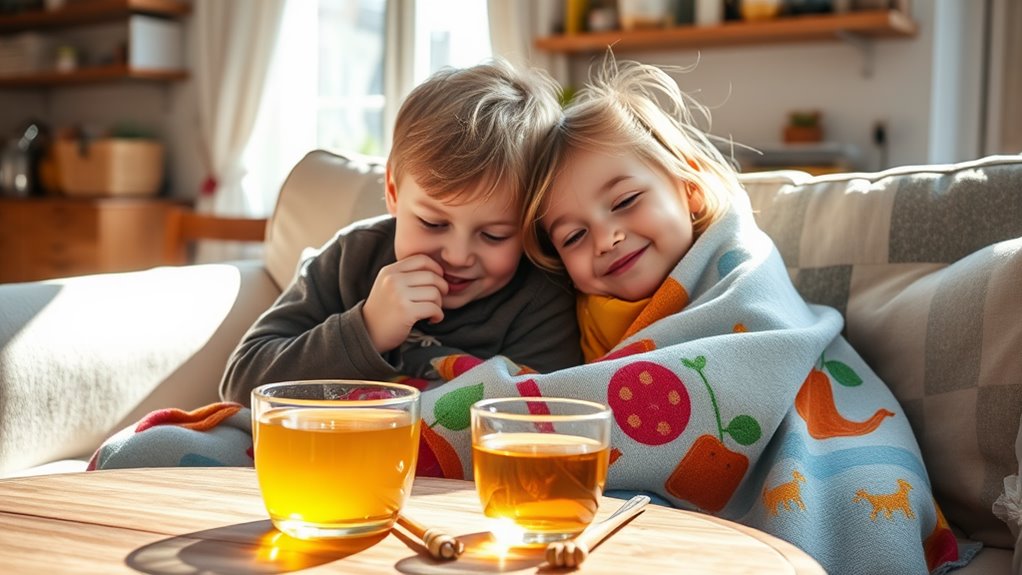 When your kids are feeling sick, you might find that natural remedies, like a warm honey-lemon drink with ginger, provide comfort and support healing. Honey soothes coughs, while lemon boosts their immune system, and ginger helps alleviate nausea. Administer it regularly for effective relief, and create a cozy environment to enhance their recovery. Remember to observe their symptoms closely, and if you’re unsure, consult a pediatrician. Explore more tips to keep your little ones comfortable and supported during illness.