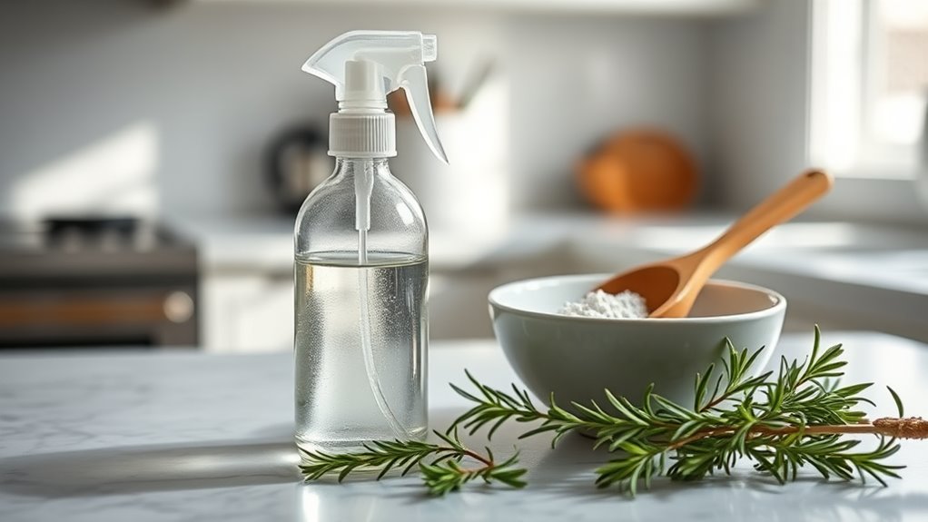 Gather distilled water for hydration, apple cider vinegar to balance scalp pH, and tea tree oil for its powerful antifungal properties. Together, these ingredients will help you combat dandruff effectively while promoting a healthier scalp. Additionally, incorporating antifungal properties from ingredients like tea tree oil can enhance the effectiveness of your treatment.