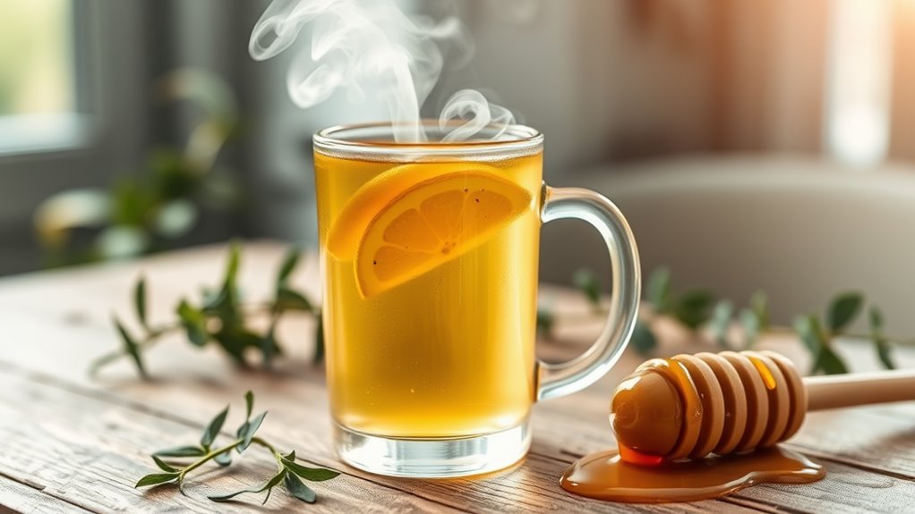 To soothe your sore throat effectively, consider crafting the ultimate comforting drink that brings relief and hydration. Start with warm water or herbal tea as your base; they’re gentle on your throat and help keep you hydrated.