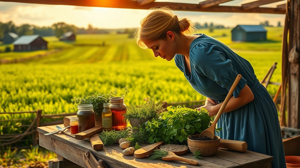 While many might overlook the power of simple plants, Amish communities have long relied on a variety of essential herbal remedies to support their health. You can find remedies like chamomile for calming nerves, garlic for boosting immunity, and peppermint for digestive comfort. These herbs, often grown in backyard gardens, foster a strong connection to nature and community. Additionally, many of these remedies draw on ancient wisdom that has proven effective over generations. Elderberry syrup, rich in antioxidants, helps ward off colds, while echinacea and yarrow are staples for treating infections. Furthermore, incorporating essential dietary changes into daily wellness rituals can further enhance overall health and resilience.
