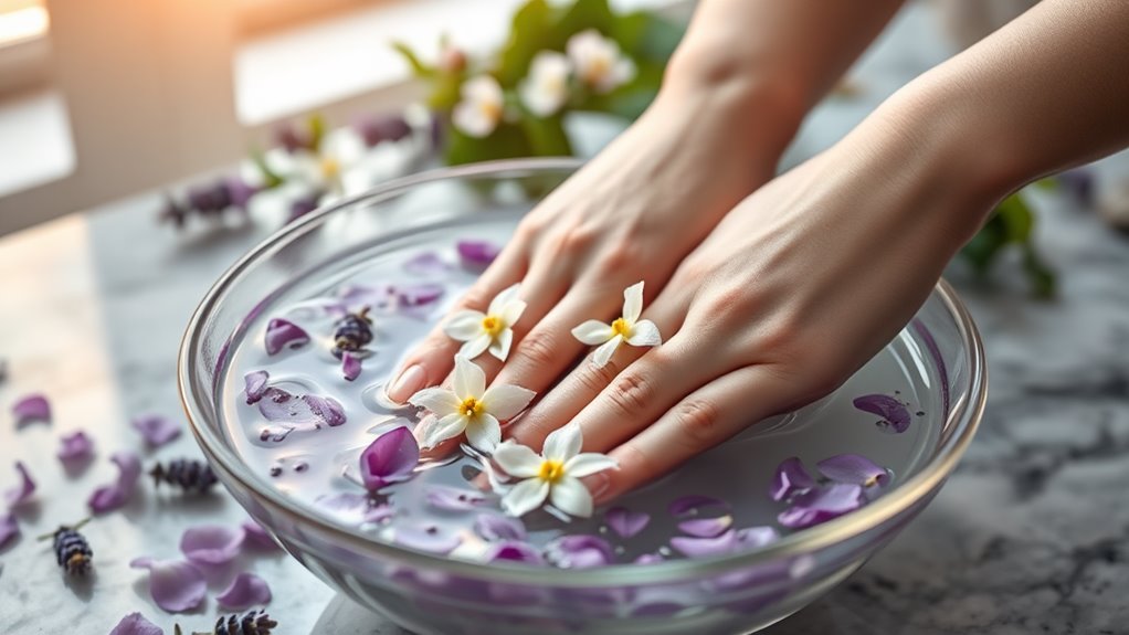 You might be surprised at how effective hand soaks can be for rejuvenating your hands. They alleviate soreness, reduce swelling, and soften the skin, making them a delightful self-care ritual. With ingredients like Epsom salt and lavender, these soaks not only enhance relaxation but also provide unparalleled hydration. Plus, the added benefits of improved circulation and stress relief can elevate your mood. Stick around to discover tips and unique recipes for creating your own luxurious soak experience.