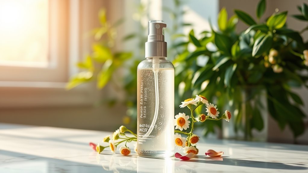This anti-inflammatory face mist works like magic by soothing and hydrating your skin almost instantly. Packed with natural ingredients like aloe vera, chamomile, and green tea extract, it targets redness and irritation while giving your complexion a revitalizing boost. Just a few spritzes can provide quick relief from pesky skin conditions like acne and eczema. You’ll love how it enhances your skincare routine and revitalizes your skin. Discover more ways to maximize its benefits for radiant skin.