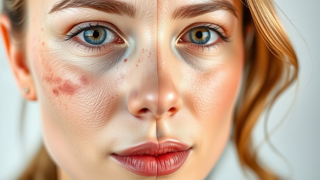 Face discoloration can stem from various triggers, such as prolonged sun exposure, which boosts melanin production and creates dark patches. You might experience it through hormonal shifts, like melasma during pregnancy, or from skin trauma and inflammation that leave lasting marks. Genetics and aging play roles too, altering melanin distribution over time. Evidence from dermatological studies highlights how environmental stressors amplify these effects. Understanding these causes empowers you to address them proactively, paving the way for a natural treatment for uneven skin that aligns with your lifestyle and promotes long-term skin health. To mitigate these effects effectively, experts recommend preventive measures like sunscreen use.