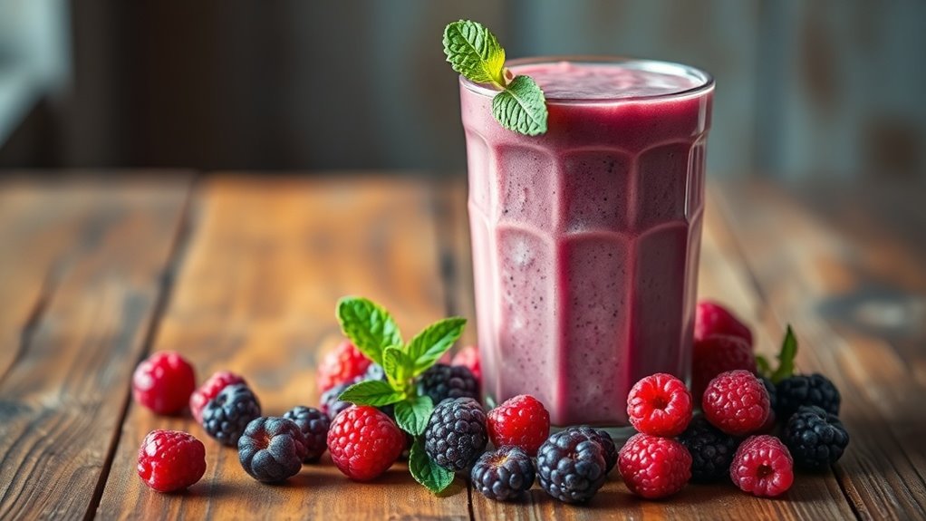 Smoothies for sore throats pack a powerful nutritional punch that can aid in your recovery. They often include vitamin-rich fruits like berries and citrus, which boost your immune system. Additionally, ingredients like honey provide soothing properties and antibacterial benefits. Yogurt adds probiotics for gut health, while leafy greens contribute vital nutrients. Together, these elements help alleviate discomfort while nourishing your body. Furthermore, the incorporation of natural remedies allows for a holistic approach to symptom relief.
